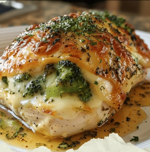 This delightful dish features succulent chicken breasts stuffed with a creamy and cheesy mixture of broccoli, cheddar cheese, and cream cheese. Baked to perfection, it offers a satisfying combination of flavors and textures that’s sure to impress.