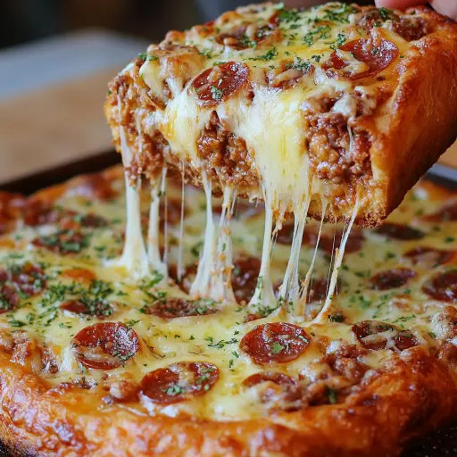 Description:This Cheesy Garbage Bread Delight is a crowd-pleasing, savory bread stuffed with a delightful medley of meats, cheeses, and vegetables. It’s a fun and flavorful dish perfect for parties, game nights, or a casual family dinner. Imagine biting into warm, golden-brown bread, revealing a molten core of cheesy goodness, punctuated by the savory notes of sausage and pepperoni, the slight sweetness of bell peppers, and the sharp tang of red onion. This recipe transforms simple pizza dough into an irresistible appetizer or main course that’s sure to disappear quickly! Think of it as a calzone’s more relaxed, communal cousin – a bread designed for sharing (if you can bear to!).