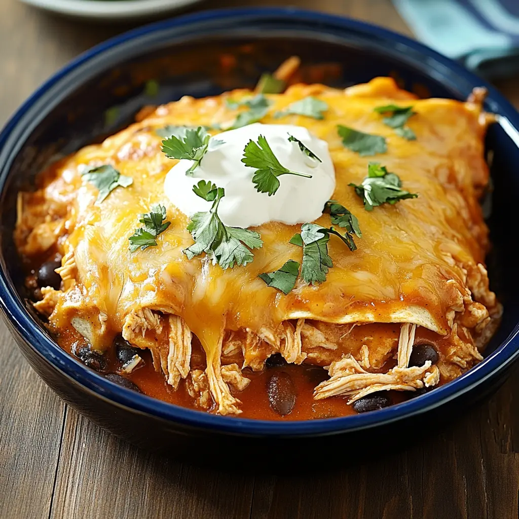 Description of this recipe: This Cheesy Slow Cooker Chicken Enchilada Bake is a comforting and flavorful dish that combines the ease of slow cooking with the deliciousness of enchiladas. Tender, shredded chicken simmers in a vibrant sauce, layered with tortillas and generous amounts of cheese, creating a bubbly and satisfying meal perfect for weeknights or casual gatherings.