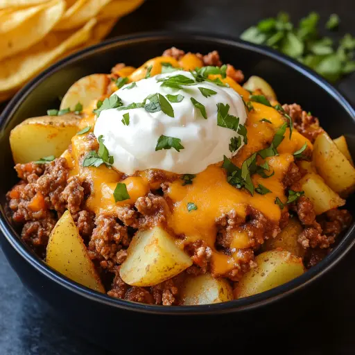 This Cheesy Taco Potatoes recipe is a guaranteed crowd-pleaser for several reasons. First, it’s incredibly versatile, offering a delightful twist on both baked potatoes and classic tacos. The combination of fluffy, baked potato and savory, well-seasoned taco meat creates a comforting yet exciting flavor profile. Second, this recipe is highly customizable. You can easily adapt the toppings and ingredients to suit your preferences, dietary needs, or whatever you have on hand. Whether you prefer a vegetarian version with black beans and corn, a spicier kick with jalapenos, or a lighter option with Greek yogurt, the possibilities are endless. Third, the Cheesy Taco Potatoes are a complete meal in one. With a satisfying balance of carbohydrates, protein, and fresh vegetables, they provide a wholesome and filling dinner. Finally, this recipe is quick and easy to prepare, making it perfect for busy weeknights when you need a delicious and satisfying meal on the table in under an hour. The simple steps and readily available ingredients make it accessible to cooks of all skill levels.