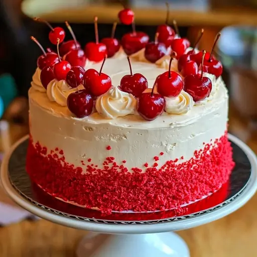 Description: A delightful and moist cherry cake topped with a tangy-sweet cherry cream cheese frosting. This cake is perfect for any occasion, bringing a burst of fruity flavor and creamy goodness in every bite. Whether it’s a birthday, holiday, or simply a weekend treat, this cherry cake is sure to impress.