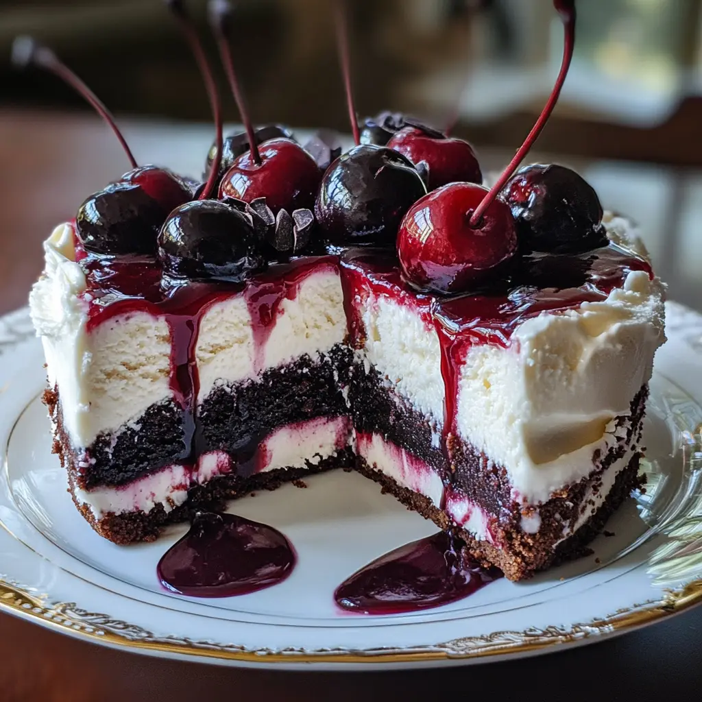 Serve this Cherry Chocolate Ice Cream Cake as a centerpiece for your dessert table. Pair it with a scoop of vanilla ice cream for an extra creamy experience or a glass of chilled sparkling water to refresh your palate. It’s perfect for summer gatherings, birthday parties, or simply as a delightful treat on a hot day.