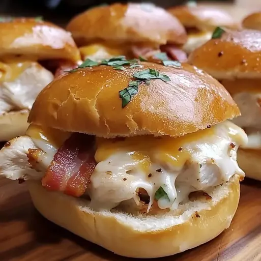 Description: These Chicken Bacon Ranch Sliders are the perfect crowd-pleaser! Fluffy Hawaiian sweet rolls are layered with juicy shredded chicken, crispy bacon, creamy Ranch dressing, and melted cheddar cheese. Baked to golden perfection with a garlic butter topping, these sliders are irresistible for parties, game days, or a quick weeknight dinner.