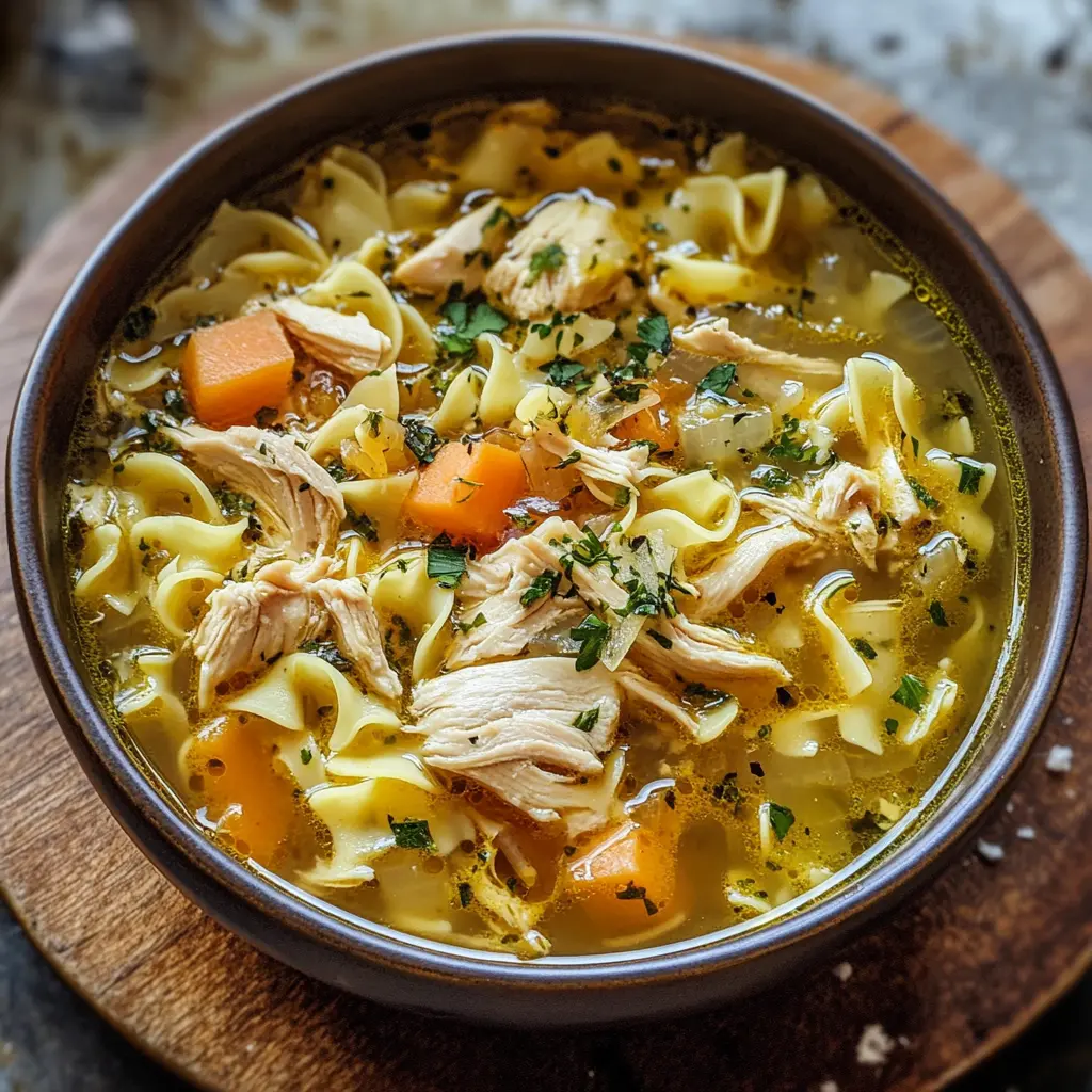 Serve your Chicken Noodle Soup in warm bowls, garnished with additional fresh parsley for a pop of color. Pair it with crusty bread or a fresh green salad for a complete meal. For a little extra indulgence, offer a sprinkle of parmesan cheese on top!