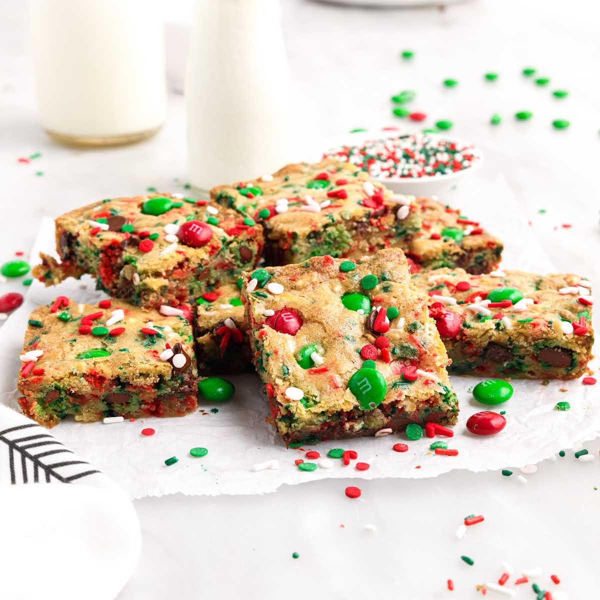 - Christmas sprinkles, for sprinkling over the baked cookie bars if desired