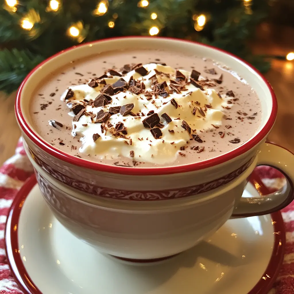 This creamy hot chocolate pairs beautifully with a variety of holiday treats. Consider serving it alongside gingerbread cookies, peppermint bark, or even a slice of rich chocolate cake. It also makes a wonderful base for a hot chocolate bar, where guests can top their drinks with various toppings like whipped cream, caramel drizzle, or spiced nuts.