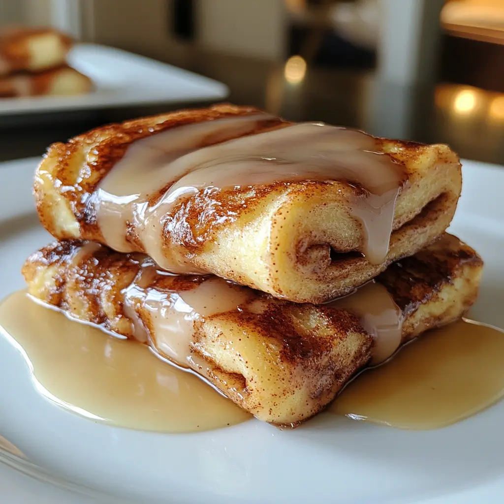 Arrange the Cinnamon Roll French Toast Roll-Ups on a beautiful serving platter. For an extra touch, sprinkle with a dusting of powdered sugar or a drizzle of maple syrup. Serve warm and savor the delightful combination of sweet cinnamon, rich butter, and fluffy French toast, enhanced by the creamy icing.