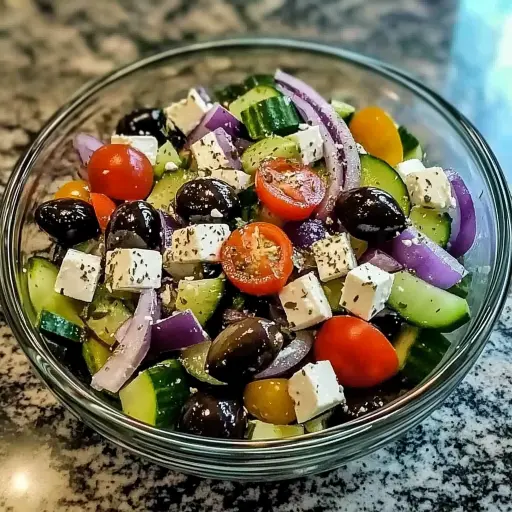 Description: Transport yourself to the sun-drenched shores of Greece with this vibrant and authentic Classic Greek Salad, known as Horiatiki Salata. A simple yet incredibly flavorful dish featuring fresh, crisp vegetables, salty olives, creamy feta cheese, and a tangy vinaigrette, it’s the perfect light meal or side dish, bursting with Mediterranean goodness. This recipe emphasizes quality ingredients and traditional preparation for an unforgettable taste of Greece.