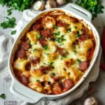 Step 1: Prepare the Meat Sauce: In a large skillet, heat over medium-high heat. Add the ground beef and Italian sausage, breaking them up as they cook. Ensure the meat is browned evenly to develop a rich, savory flavor. Once browned, drain any excess fat to prevent a greasy lasagna. Add the finely chopped onion and minced garlic to the skillet. Cook until the onion becomes translucent and the garlic is fragrant, usually about 3-5 minutes. This step infuses the sauce with aromatic flavors that are essential to the lasagna’s overall taste. Stir in the crushed tomatoes, tomato sauce, tomato paste, dried oregano, dried basil, salt, pepper, and sugar (if using). The sugar balances the acidity of the tomatoes, resulting in a smoother, more harmonious flavor. Let the sauce simmer for 20–30 minutes, stirring occasionally. Simmering allows the flavors to meld together, creating a deep, complex sauce that forms the heart of the lasagna.