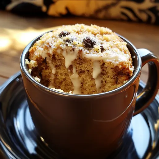 Description: This single-serving Coffee Cake in a Mug recipe delivers all the warm, comforting flavors of a classic coffee cake in minutes. Perfect for a quick breakfast, a sweet afternoon treat, or a late-night craving, this mug cake is easy, convenient, and utterly delicious. With layers of moist cake, crunchy streusel, and sweet glaze, you’ll wonder why you haven’t been making mug cakes all along.