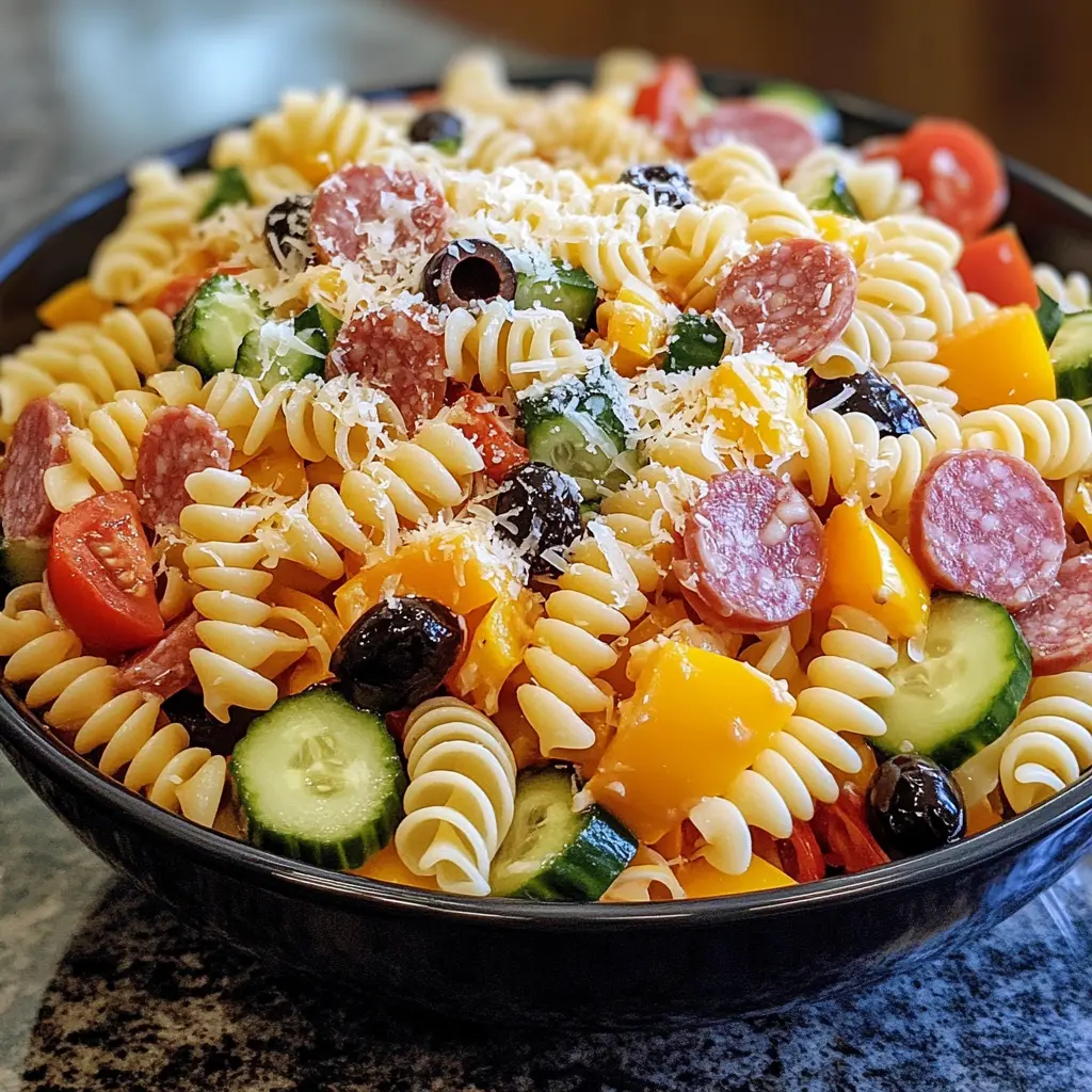 Pasta salad has become a staple in many households, and it’s easy to see why. Its adaptability allows you to mix and match ingredients to suit your taste and what you have on hand. This recipe combines colorful noodles with a variety of delicious vegetables, salami, and cheese, all topped off with a flavorful dressing that ties everything together. Whether you’re serving it for lunch, dinner, or as a side dish, this pasta salad is bound to impress.