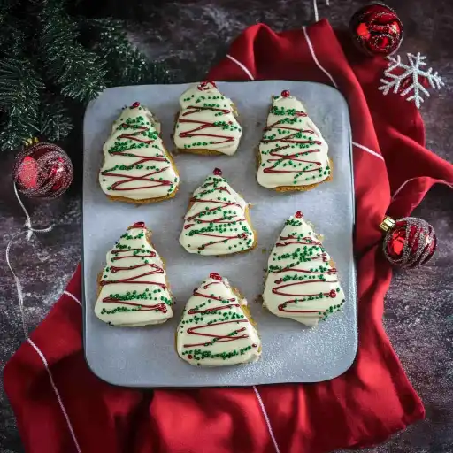 Step 14: Set and Serve Allow the decorated Christmas tree cakes to set completely at room temperature or in the refrigerator. Once the candy coating is firm, they are ready to serve and enjoy!