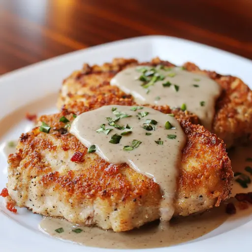 Description: Crispy, golden-brown fried pork chops smothered in a rich and creamy bacon gravy—a quintessential Southern comfort food dish that’s both satisfying and flavorful. This recipe elevates the classic fried pork chop with a decadent bacon gravy, making it a family favorite for weeknight dinners or special occasions.