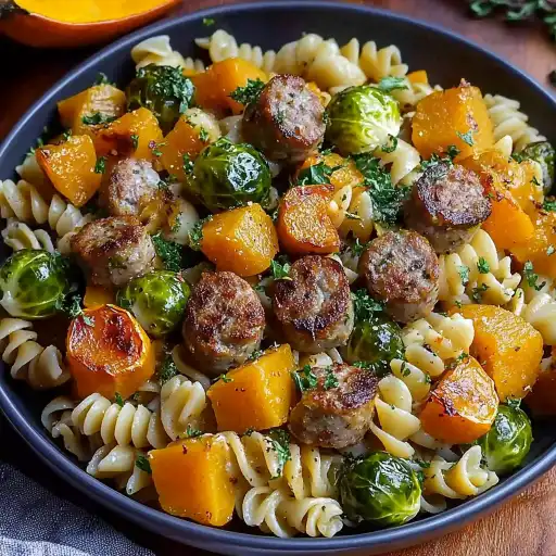 This recipe combines the heartiness of sausage and pasta with the comforting sweetness of butternut squash and the slightly bitter, earthy notes of Brussels sprouts. It’s a perfect dish for a chilly autumn evening, bringing together seasonal flavors in a creamy, savory sauce that will warm you from the inside out. It’s not just a meal; it’s an experience that celebrates the best of fall produce.