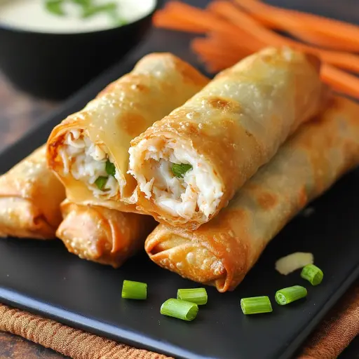 Serve your Crab Rangoon Egg Rolls warm, accompanied by a variety of dipping sauces. Sweet and sour sauce, soy sauce, or even a spicy chili sauce can complement the flavors beautifully. For an extra touch, garnish with fresh cilantro or additional chopped green onions.