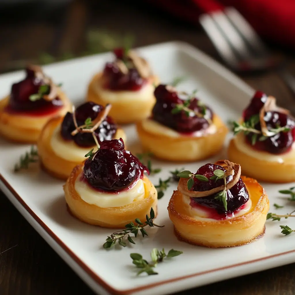 Cranberry Brie Bites are fantastic on their own, but you can elevate your appetizer spread by pairing them with a variety of complementary items. Consider serving them alongside a charcuterie board filled with cured meats, assorted cheeses, olives, and seasonal fruits. A crisp salad with a light vinaigrette can also balance the richness of the bites. For drinks, a sparkling wine or a warm spiced cider would be the perfect accompaniment.