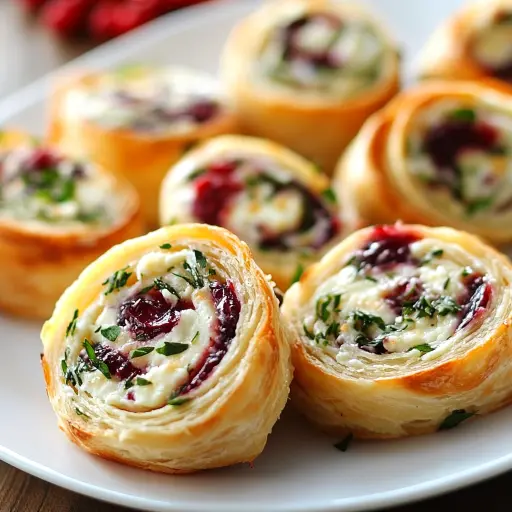 Cranberry Feta Pinwheels are more than just an appetizer; they’re a delightful combination of flavors and textures that can elevate any occasion. Their ease of preparation, versatility, and appealing presentation make them a must-try recipe. Whether you’re hosting a party or simply looking for a quick and tasty snack, these pinwheels are sure to be a hit. Enjoy the perfect blend of creamy, sweet, and savory in every bite!