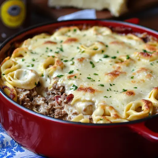 This Creamy Beef & Tortellini Alfredo Bake is a simple yet satisfying dish that’s perfect for any occasion. With its rich and creamy sauce, tender tortellini, and savory beef, it’s a guaranteed crowd-pleaser. Whether you’re looking for a quick weeknight meal or an impressive dish to serve to guests, this bake is sure to become a new favorite. Enjoy!