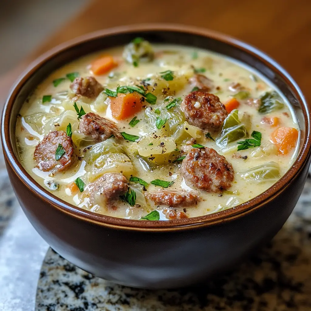 ConclusionIn conclusion, this Creamy Cabbage & Sausage Soup is a triumph of flavor and heartiness that’s perfect for any night of the week. It’s not only a great way to warm up on a chilly evening but also a fantastic option for meal prep. With ingredients that are often easy to find and minimal preparation time, this recipe has everything you need for a delightful meal.