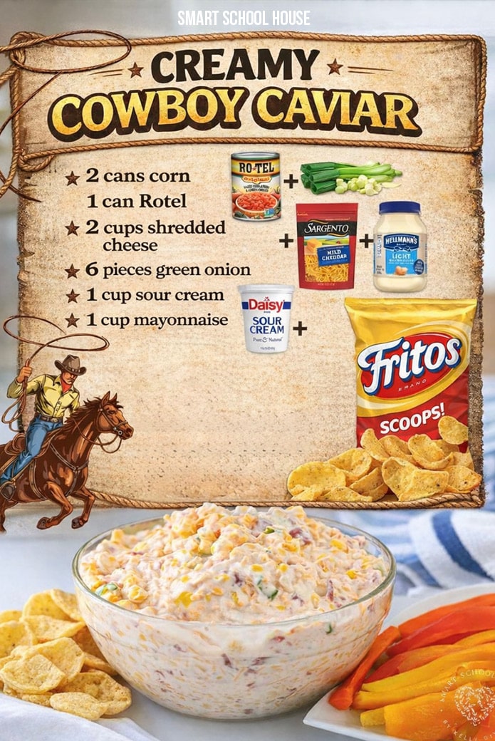 Creamy Cowboy Caviar is more than just a dip; it’s a celebration of flavors and textures that come together in perfect harmony. Whether you’re hosting a party, need a quick appetizer, or simply want a delicious snack, this recipe is a guaranteed hit. Its ease of preparation and customizable nature make it a staple for any occasion. Enjoy the creamy, cheesy, and utterly irresistible goodness of this Cowboy Caviar!