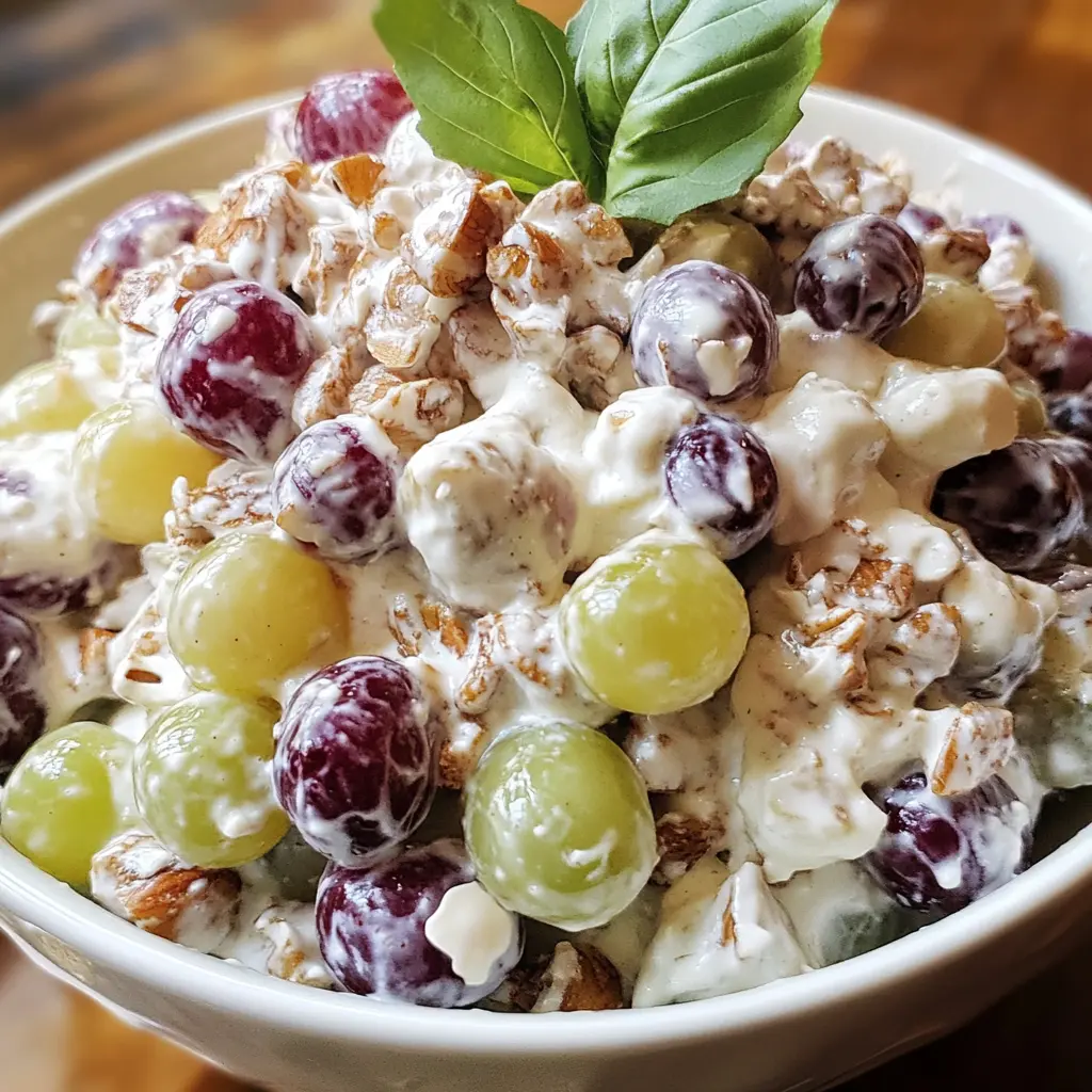 Creamy Grape Salad is a timeless recipe that combines simplicity with delightful flavors. Its creamy dressing, sweet grapes, and crunchy topping make it a versatile dish that can be enjoyed in various settings. Whether you are serving it at a summer barbecue or enjoying it as a light dessert, this salad is sure to impress. With just a few simple ingredients and minimal preparation, you can create a dish that is both beautiful and delicious. So gather your ingredients, follow the steps, and get ready to enjoy this refreshing treat!