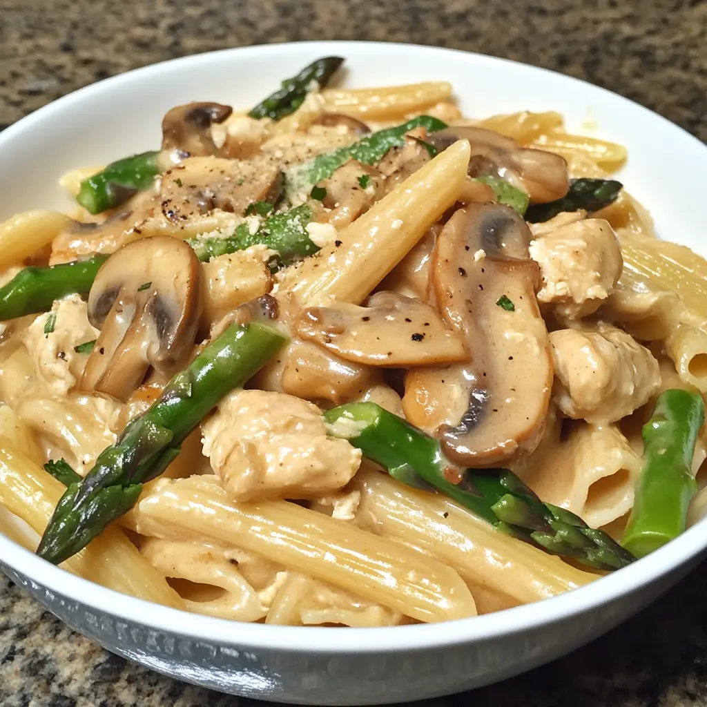Pasta is one of those universal comfort foods that can be dressed up or down depending on the occasion. In this recipe, we elevate simple penne pasta into a gourmet dish with the addition of chicken, mushrooms, and asparagus. The creamy sauce is the star of the show, bringing everything together in a way that is both indulgent and satisfying. Perfect for family dinners or casual gatherings, this Creamy Mushroom and Asparagus Chicken Penne is a dish that will have everyone asking for seconds.