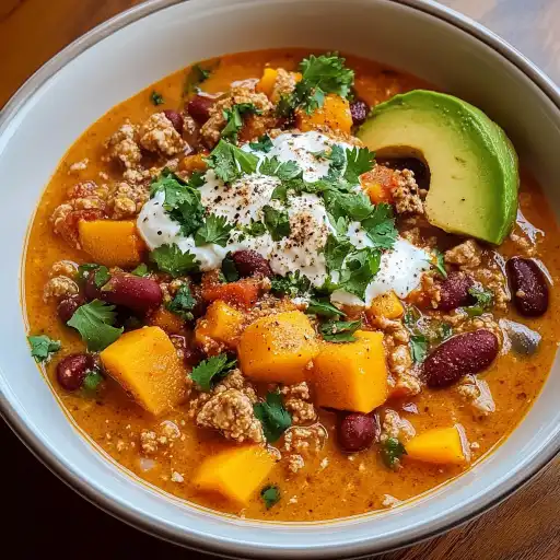 This Creamy Turkey Pumpkin Chili is a delightful and versatile recipe that’s perfect for any occasion. Its unique blend of flavors and textures makes it a standout dish that’s sure to impress. Whether you’re looking for a comforting weeknight meal or a festive dish to share with friends and family, this chili is a fantastic choice. The combination of ground turkey, pumpkin puree, and warm spices creates a symphony of flavors that will tantalize your taste buds. The addition of beans, tomatoes, and corn adds heartiness and nutritional value, making it a complete and balanced meal. With its easy preparation and customizable ingredients, this chili is a must-try for anyone looking to add a creative twist to their chili repertoire. Enjoy the warmth and richness of this Creamy Turkey Pumpkin Chili and savor the flavors of fall in every spoonful.