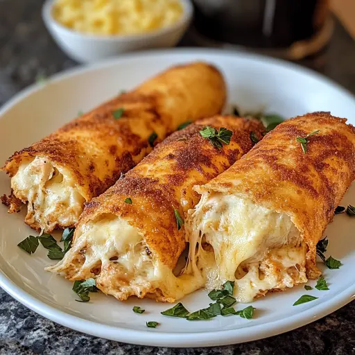Description: These Crispy Air Fryer Chicken & Mozzarella Wraps are a delightful and easy-to-make appetizer or light meal, perfect for using up leftover cooked chicken. They combine the savory flavors of chicken, melted mozzarella, and creamy cheese with aromatic herbs and spices, all wrapped in a crispy, golden-brown tortilla shell. Air frying ensures they are perfectly crispy without the excess oil of traditional frying, making them a healthier and equally delicious option. Whether you’re hosting a game night, planning a quick family dinner, or just craving a satisfying snack, these wraps are guaranteed to be a hit.