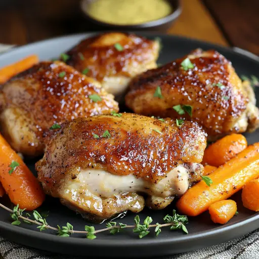 Crispy Brown Sugar Mustard Chicken Thighs with Roasted Carrots is a delightful and easy-to-make meal that is sure to become a regular in your dinner rotation. The combination of sweet and savory flavors, the crispy chicken skin, and the tender roasted carrots make for a satisfying and memorable dish. This recipe is perfect for busy weeknights, family gatherings, or any occasion where you want to impress with minimal effort. So, gather your ingredients, preheat your oven, and prepare to enjoy a truly delicious and comforting meal!