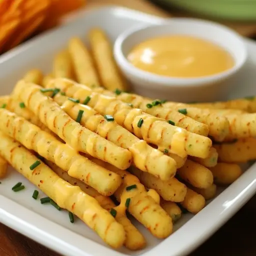 Description: These Crispy Veggie Potato Sticks offer a delightful and healthier alternative to traditional potato chips. Packed with the goodness of potatoes, carrots, celery, and a touch of mozzarella, these sticks are baked to crispy perfection and served with a creamy, flavorful homemade cheese sauce. Perfect as a snack, appetizer, or side dish, they are sure to be a hit with both kids and adults!