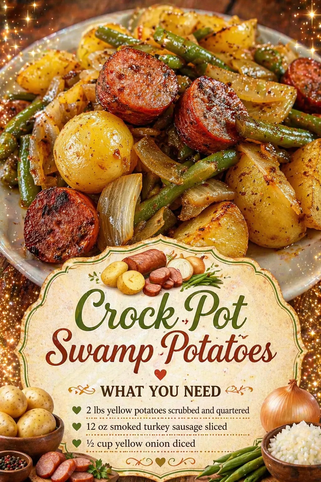 Hearty, flavorful, and incredibly easy to prepare, Crock Pot Swamp Potatoes are the perfect comfort dish. With tender potatoes, smoky sausage, and seasoned green beans all slow-cooked together, this recipe delivers rich, well-blended flavors with minimal effort.