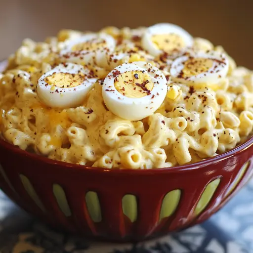 Description: A delightful twist on classic macaroni salad, this recipe combines the creamy, tangy flavors of deviled eggs with the satisfying texture of macaroni. It’s a perfect side dish for potlucks, barbecues, or a simple family meal. This Deviled Egg Macaroni Salad is easy to make, crowd-pleasing, and bursting with flavor.