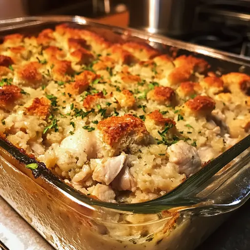Description: A comforting and hearty casserole, perfect for a family dinner. This recipe combines tender chicken, flavorful stuffing, and a creamy sauce into a single dish that’s easy to prepare and guaranteed to please. It’s an excellent way to use leftover chicken, especially rotisserie chicken, to create a satisfying meal with minimal effort.
