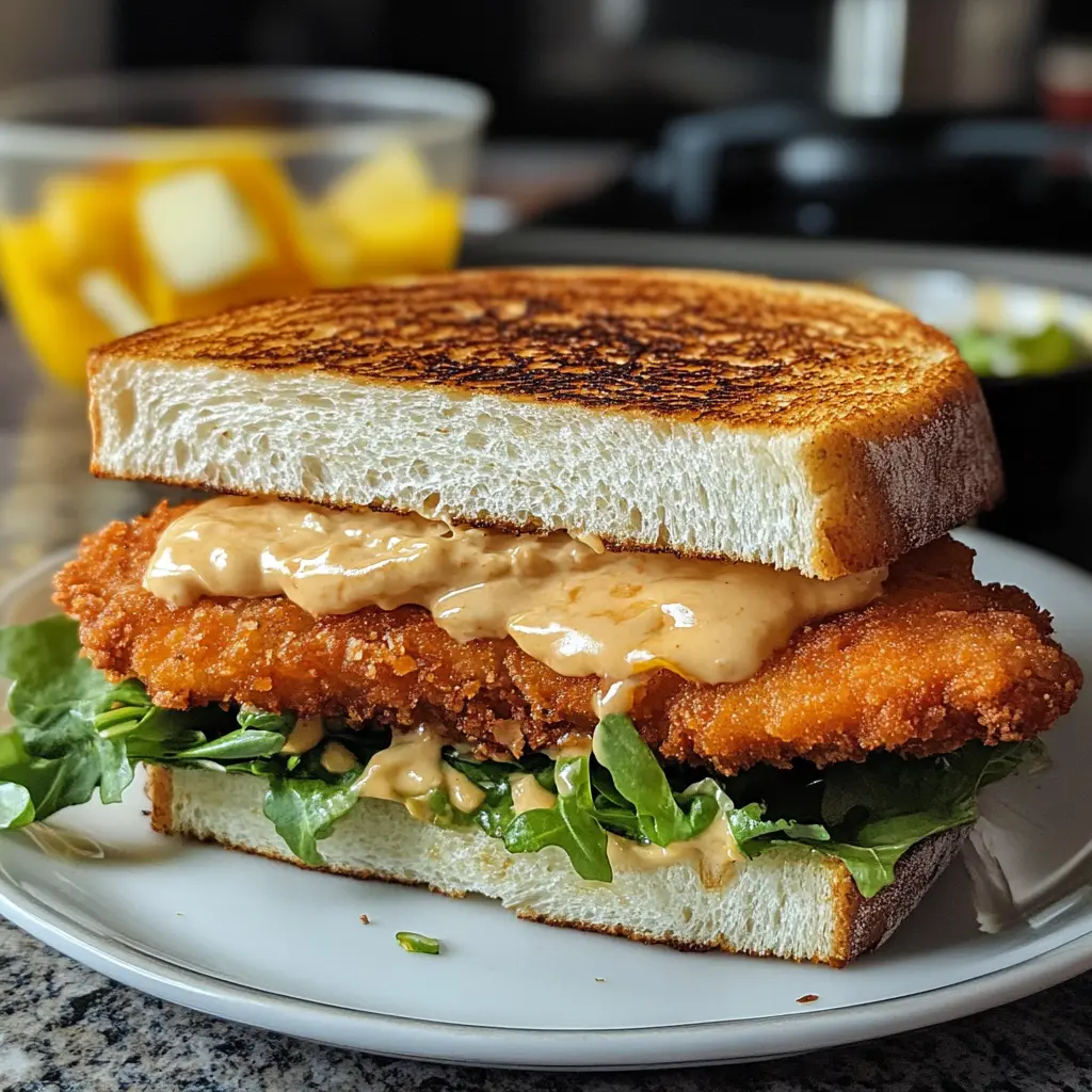 Description: This recipe elevates the classic chicken schnitzel into a delightful sandwich experience. Crispy, Parmesan-crusted chicken fillets are nestled between slices of crusty bread, slathered with a spicy sriracha mayo, and complemented by fresh lettuce and cucumber. It’s a satisfying and flavorful meal that’s perfect for lunch, a quick dinner, or even a picnic.