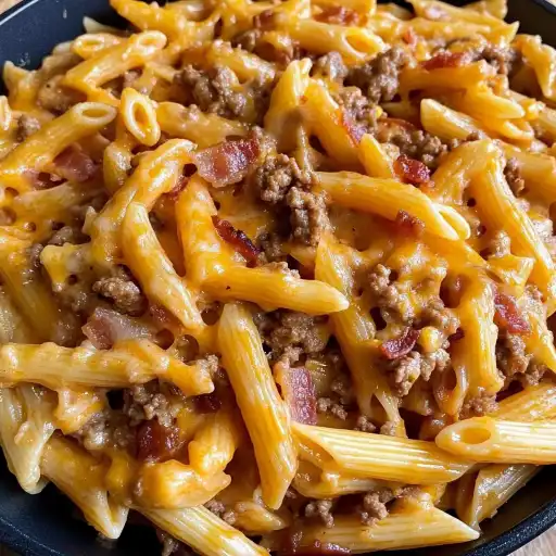The Easy Bacon Cheeseburger Pasta recipe is a delightful twist on a classic favorite, bringing the beloved flavors of a bacon cheeseburger to a comforting pasta dish. It’s quick, easy, and customizable, making it a perfect option for busy weeknights and family meals. With its combination of savory ground beef, crispy bacon, tangy sauce, and melted cheddar cheese, this recipe is sure to become a staple in your kitchen. So, gather your ingredients, follow the simple steps, and enjoy a delicious and satisfying meal that everyone will love!