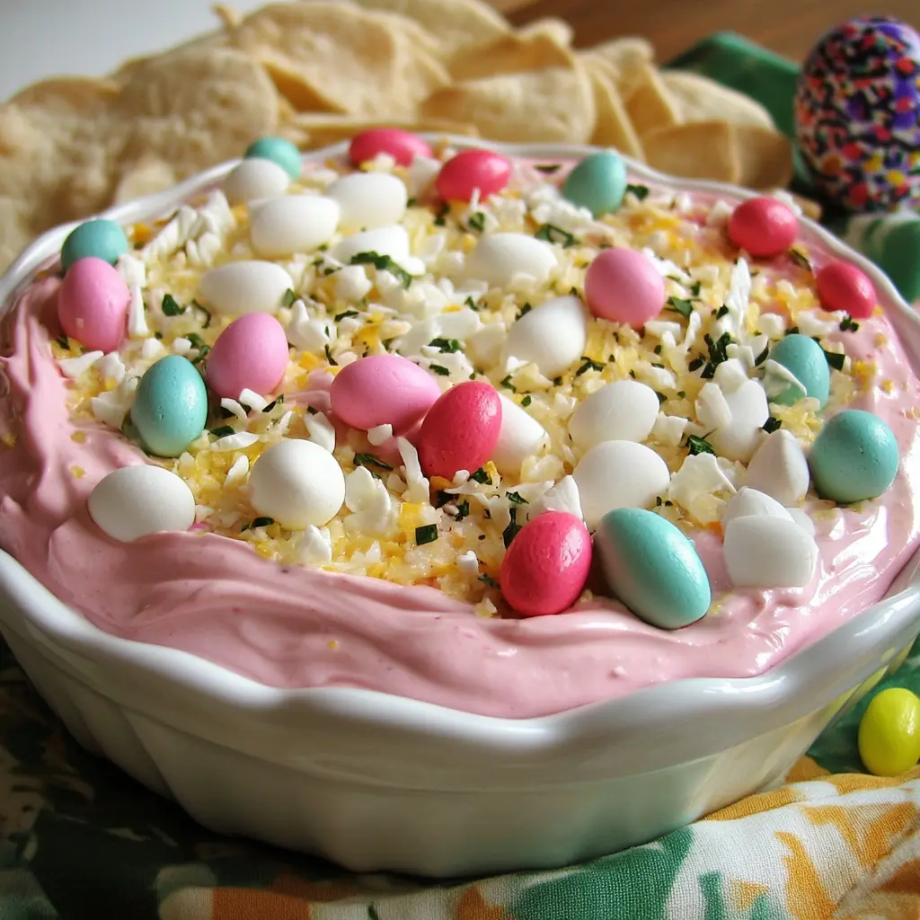 Description of this recipe: This Easy Easter Dip is a delightful and visually appealing dessert dip, perfect for springtime gatherings and celebrations. Combining the creamy richness of cream cheese with the sweet and tangy flavors of fruit and the fun of candy melts, this dip is sure to be a crowd-pleaser.