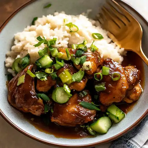 Filipino Chicken Adobo is a quintessential Filipino dish renowned for its savory, tangy, and slightly sweet flavor profile. This recipe transforms humble chicken thighs into a tender, flavorful delight through a simple yet magical combination of soy sauce, vinegar, garlic, bay leaves, and black pepper. Braised to perfection in this aromatic concoction, the chicken absorbs the rich flavors, resulting in a dish that is both comforting and deeply satisfying. The sauce, reduced to a luscious, jam-like glaze, elevates the dish to a whole new level, making it an unforgettable culinary experience.