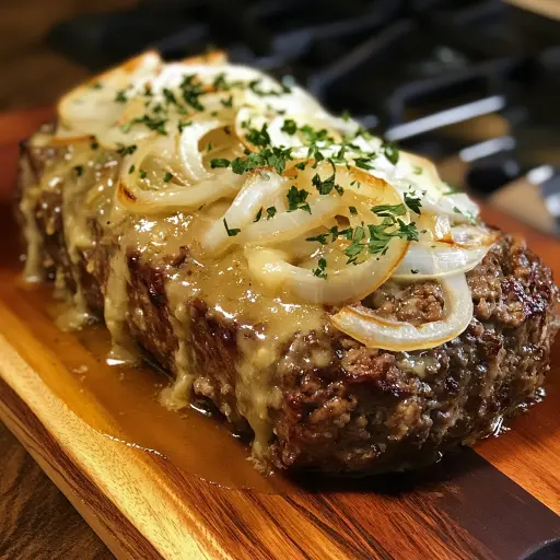 The French Onion Meatloaf is a delicious and comforting dish that combines the best of classic meatloaf with the rich flavors of French onion soup. The caramelized onions and Gruyère cheese add a sophisticated twist to this family favorite, making it a delightful meal for any occasion. Whether you’re looking for a hearty weeknight dinner or a special dish to impress your guests, this recipe is sure to deliver.