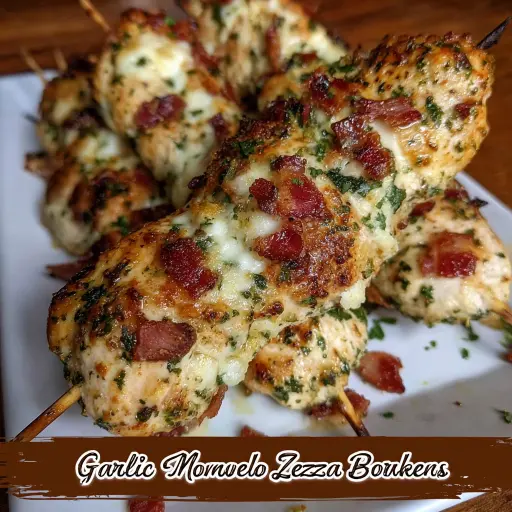 Garlic Mozzarella Chicken Bomb Skewers are a crowd-pleasing dish that’s easy to make and bursting with flavor. Whether you’re grilling or baking, these skewers are sure to be a hit at your next gathering. The combination of juicy chicken, melted mozzarella, and savory seasonings is simply irresistible. Enjoy!