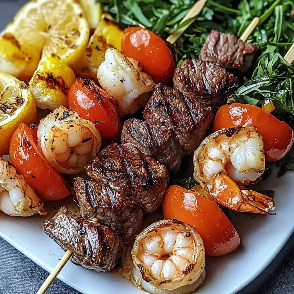 Grilled Steak and Shrimp Kabobs offer a delightful surf-and-turf experience on a stick, perfect for a summer barbecue or a quick and easy weeknight dinner. Tender steak and succulent shrimp are marinated in a flavorful blend of savory and zesty ingredients, then grilled to perfection alongside colorful, fresh vegetables. This recipe is a crowd-pleaser that is both delicious and visually appealing.