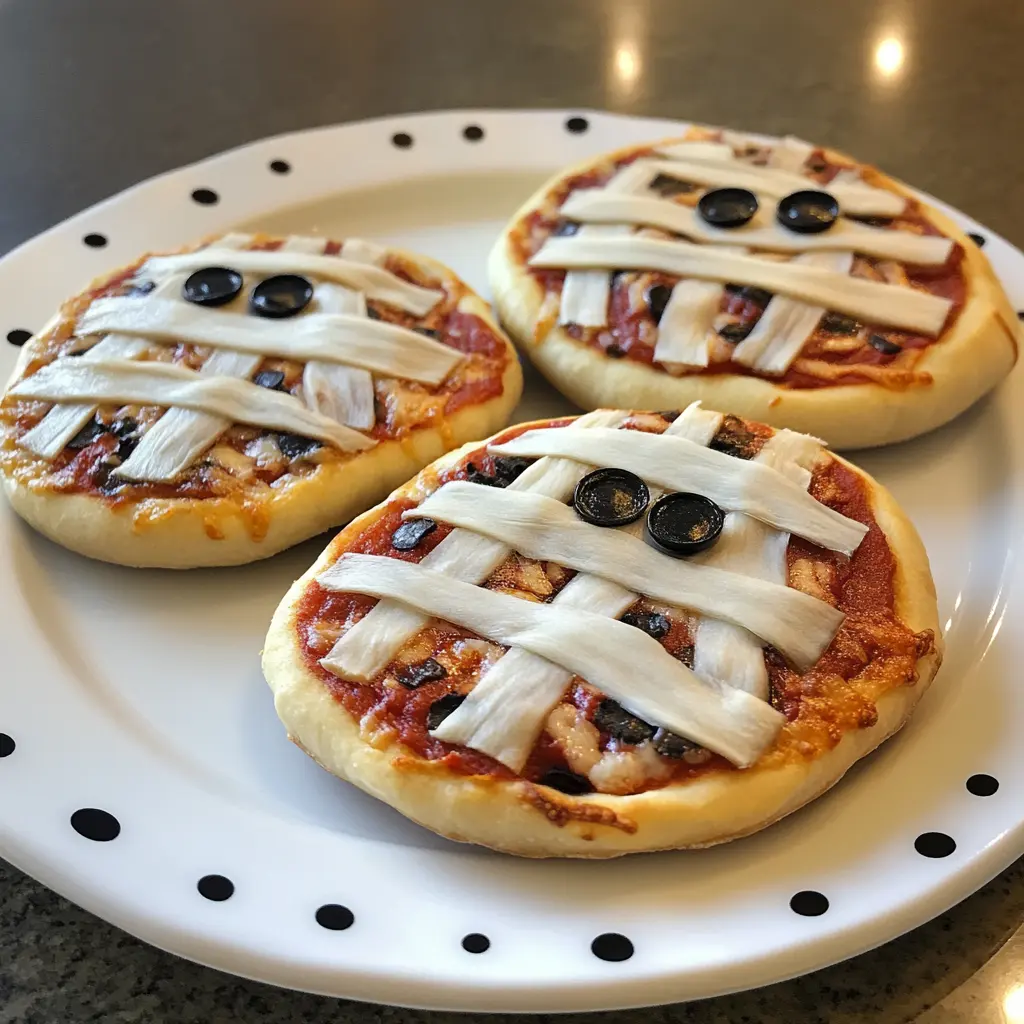 These mummy pizza bagels pair wonderfully with classic sides like a fresh garden salad, vegetable sticks with dip, or a spooky-themed fruit platter to complement the Halloween vibe!