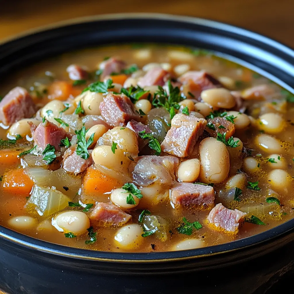 This recipe is cherished not only for its delightful flavors but also for its versatility and ease of preparation. The combination of smoky ham and creamy beans creates an irresistible blend of textures. Additionally, it’s an economical recipe that makes use of leftover ham, ensuring that nothing goes to waste. Perfect for meal prep, this dish tastes even better the next day as the flavors continue to meld together. And with the convenience of a slow cooker, you can set it and forget it, allowing the ingredients to mingle into a comforting bowl of nourishing soup.