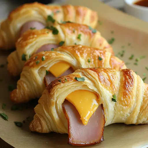 Description: These Ham & Cheddar Crescent Roll-Ups are the perfect quick and easy snack, lunch, or appetizer! Flaky crescent rolls are filled with savory ham and sharp cheddar cheese, brushed with a flavorful garlic butter, and baked to golden-brown perfection. They are incredibly simple to make and always a crowd-pleaser.