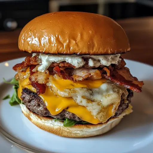 This isn’t just a burger; it’s a culinary experience designed to combat the dreaded hangover. The combination of savory ground beef, crispy bacon, gooey cheese, runny egg yolk, and spicy hangover sauce creates a flavor explosion that will awaken your senses and revitalize your body. The crispy hash browns add a delightful textural contrast, while the minced jalapeño provides a subtle kick that will clear your sinuses. It’s a symphony of flavors and textures that will leave you feeling satisfied, energized, and ready to tackle the day. Plus, it’s incredibly fun to make and assemble, making it a great meal to share with friends. This burger is the ultimate comfort food, perfect for those mornings when you need a little extra TLC.