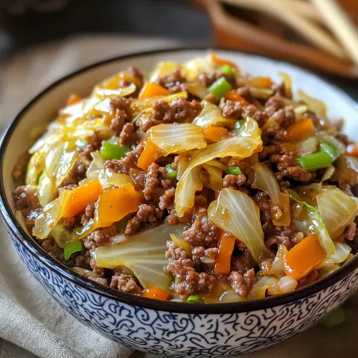 Description: This quick and easy stir-fry combines lean ground beef with crunchy cabbage and flavorful Asian-inspired sauces, making it a healthy and satisfying meal perfect for weeknights.