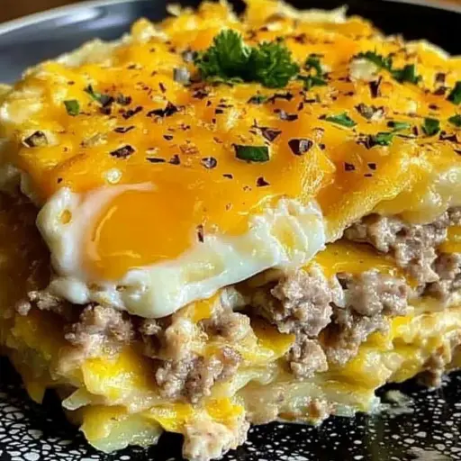 This recipe is a comforting and satisfying casserole, perfect for a weekend brunch, holiday breakfast, or even a simple weeknight dinner. It’s packed with savory sausage, fluffy eggs, creamy cream cheese, and crispy hashbrowns, all topped with melted cheddar cheese. It’s a crowd-pleaser that’s both easy to make and incredibly delicious.