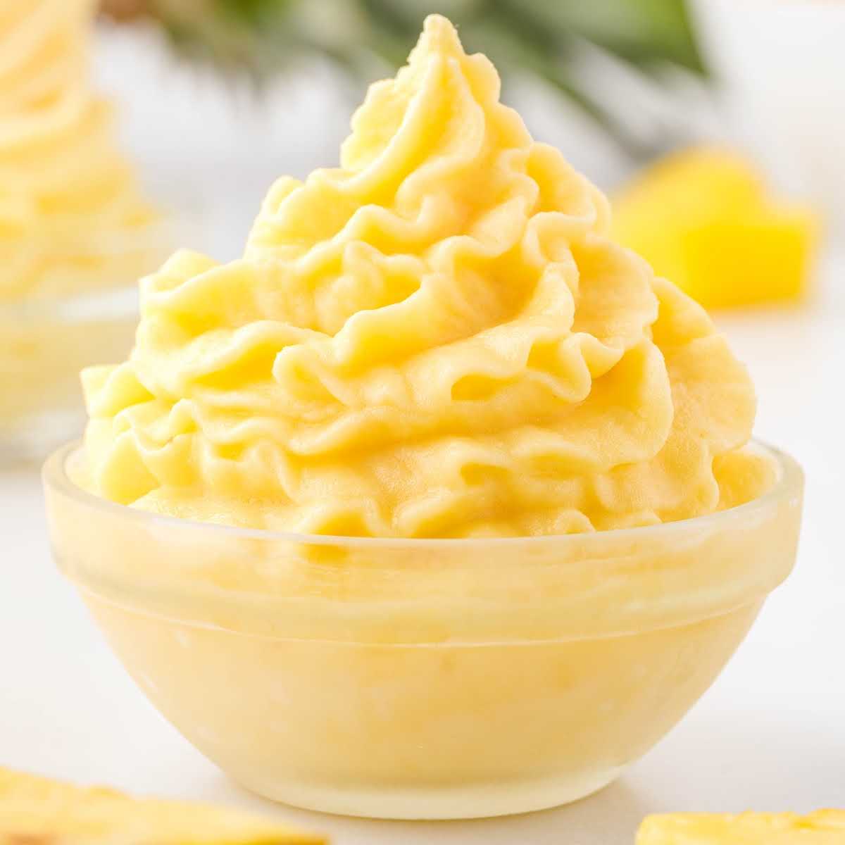 Serve your Homemade Dole Whip immediately after blending for the perfect soft-serve consistency. It’s best enjoyed in a chilled cup or bowl, topped with a small wedge of pineapple for a decorative touch.