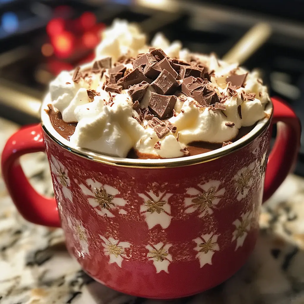 Step 6: Garnish and Serve. Carefully remove the mug from the microwave (it will be hot!). Top with whipped cream, mini marshmallows, and chocolate shavings. Serve warm immediately.