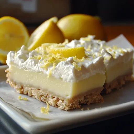 Description Bright, creamy, and refreshingly simple, these Lazy Day Lemon Cream Pie Bars are the perfect treat for any occasion. Combining a buttery graham cracker crust, a smooth cream cheese layer, and a tangy lemon filling, these bars are easy to make and utterly irresistible. Ideal for summer gatherings, picnics, or a simple dessert to brighten your day, these bars are sure to become a family favorite.