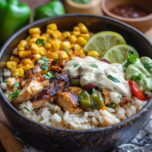 Step 5: Assemble the Rice Bowls: Cook rice according to package directions. To assemble the bowls, start with a generous scoop of cooked rice as the base. Top with the cooked chicken fajita mixture, black beans, diced avocado, and corn. Drizzle generously with the smoky chipotle cream. Garnish with fresh cilantro and serve with lime wedges.